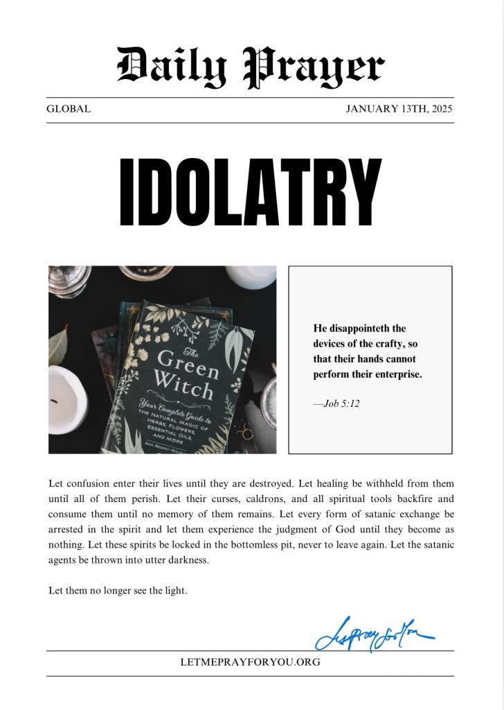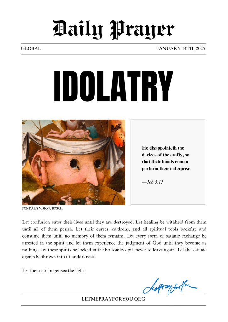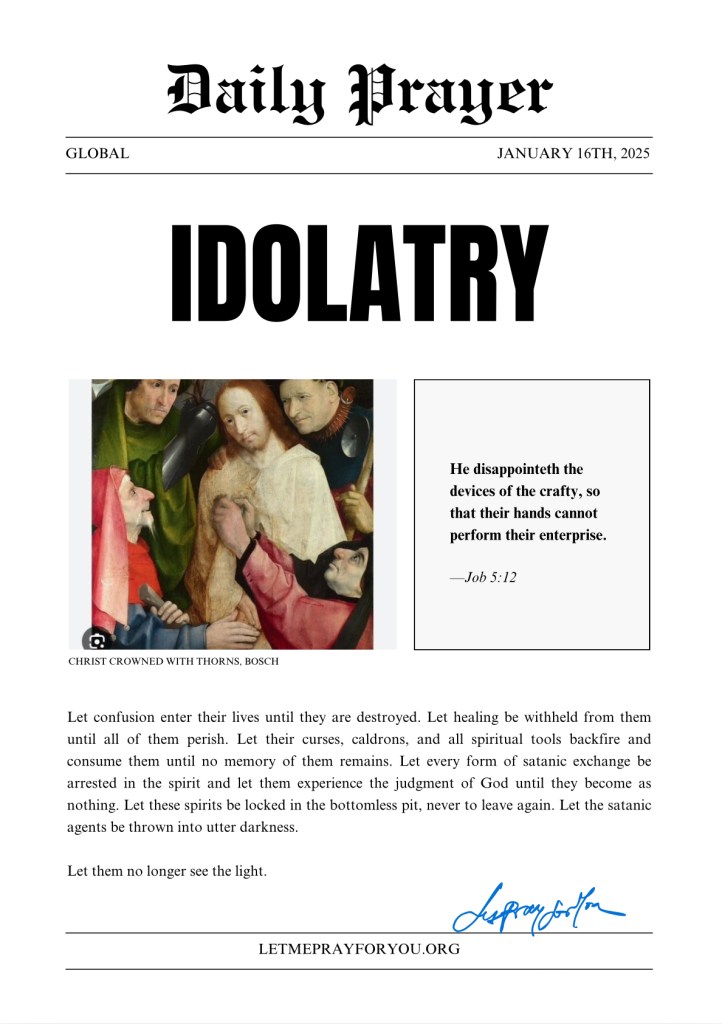 Be thou removed, and be thou cast into the sea now in Jesus Christ’s name, amen.