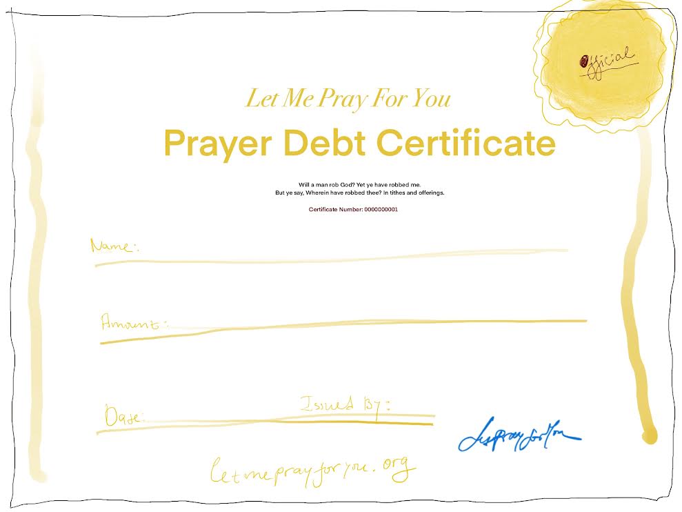 Let Me Pray For You Ministry Tax Collector’s Receipt